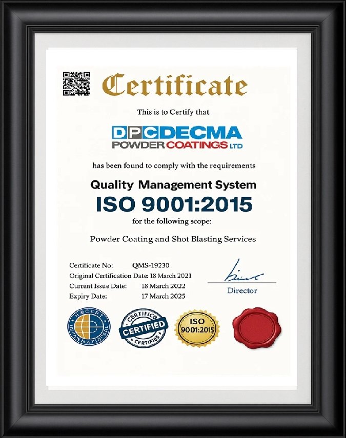 At DECMA, our Qualicoat and ISO 9001 certifications reflect our commitment to exceptional quality and durability. Every aluminium powder coating we deliver meets the highest international standards, ensuring reliable performance, long-lasting finishes, and complete customer satisfaction across all projects.